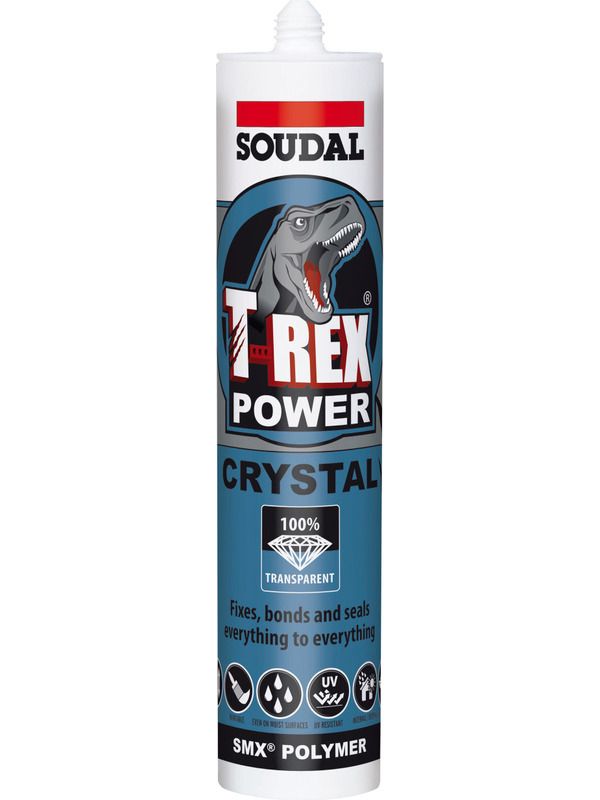 - Cleaning: Clean with Soudal Surface Cleaner or with Soudal Swipex, immediately after use. Cured T-Rex Crystal can only be removed mechanically.